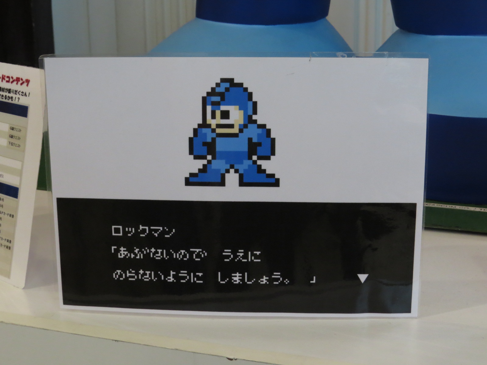 もう梅雨明けですかね~(・o・) >更新日記 チャット会情報とロックマン関連リストを更新しました。 チャット会は前回の開催から2か月ぶりになりますが、 いつもの事とはいえ・・・はたして集まるか、それだけです; ロックマン関連リストは・・・ ・D-arts ブラックゼロ ・ロックマンクロスオーバー ご当地ボスキャラコンテスト ブラックゼロは12月発売予定で、 魂ウェブ限定商品になっているので注意です。 ご当地ボスキャラコンテストは、 住んでいる地域で考えてみるのが一番いいと思いますが、 都会ではその分だけ激戦必至ですかね・・・。 この県だとメジャーなうどんでは面白くなさそうなので、 別のを探して応募してみようかしら。 画力が弱いので、どうしても敬遠してしまう(><;) >イーカプコンお台場出張所 先週、開催されたメガロックファンフェスタで上京したついでに お台場にあるイーカプコンに行って来ました。 巨大(?)コブンがお店に登場と謳っていたので、 いざ行ってみるとお店の入口にたたずんでいました。 台の上に置かれているので、インパクトが強いです(・o・) ロックマン小さく注意コメントを・・・w 新日本プロレスとのコラボTシャツ発売予定のポスター。 お店の中を探していたら、既に発売されていたので買いました。 値段は多少はりましたが・・・( ̄▽ ̄;) お陰で去年の12月から実施している 1,000円以上のお買いもので頂けるシールで ロックマン関係のシールは全て揃えられましたw PR コメントを投稿する